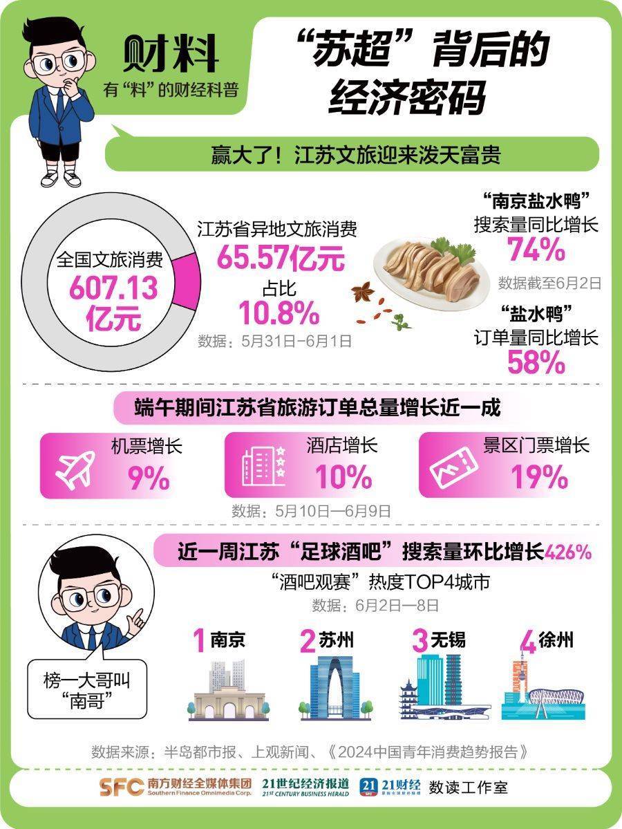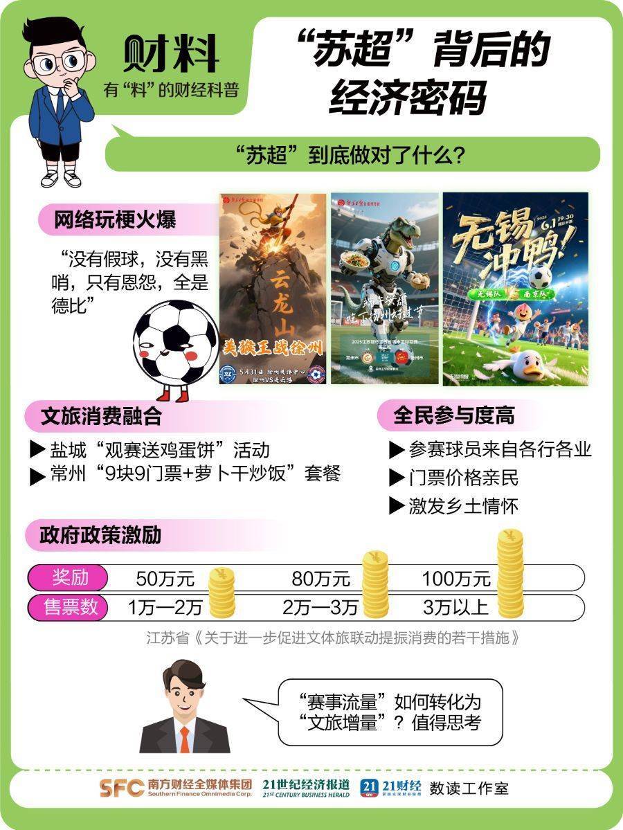 “苏超”赢了,江苏文旅赢麻了!二手门票炒至600元、场均观众达8798人、足球产品销量暴涨80%、端午旅游订单增长近一成……这场草根赛事如何完成从“看台”到“柜台”的精准射门?“苏超”爆火,到底做对了什么?本期《21财料》为你解码!